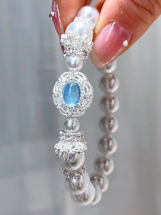 Zen Healing Amethyst Aquamarine Pearl Luxurious Bracelet