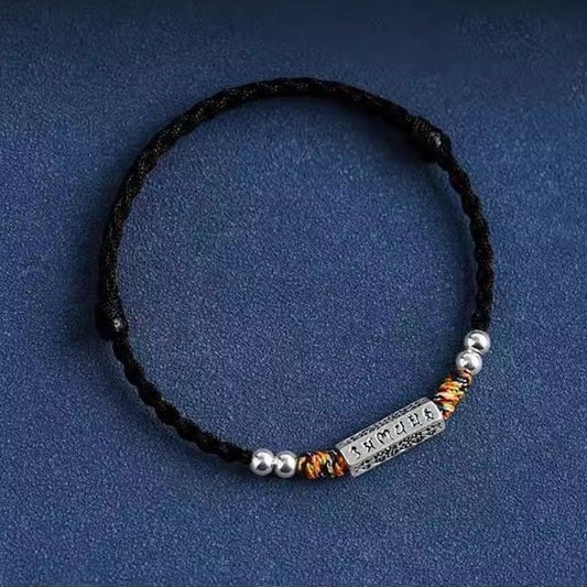 Zen Healing Tibetan 925 Sterling Silver Six True Words Red String Blessing Bracelet Anklets