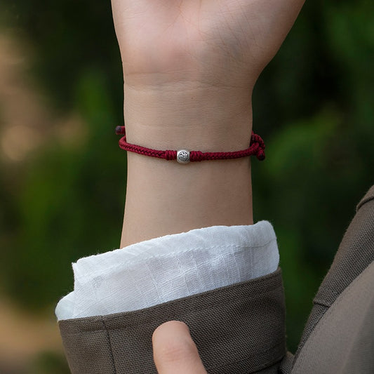 Zen Healing Sterling Silver “Fu” Red String Blessing Bracelet