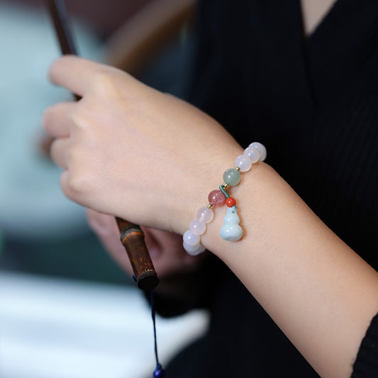 Zen Healing Natural Agate White Chalcedony Gourd Lucky Charm Bracelet 8mm