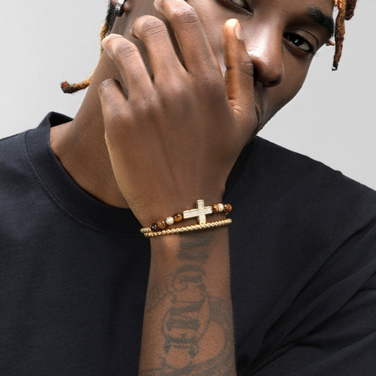 Zen Healing Titanium Steel Cross Design Power Bracelet Set