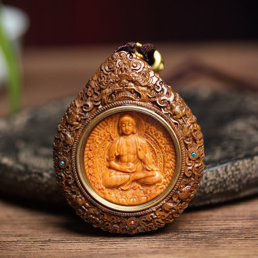 Zen Healing Agarwood Zodiac Natal Buddha Thangka Protection Pendant Necklace