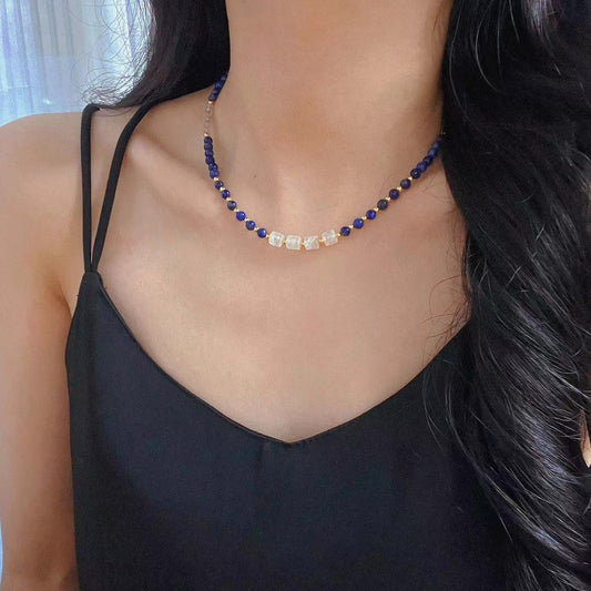 Zen Healing Vintage Natural Lapis Lazuli Clear Quartz Clarity & Balance Choker Necklace