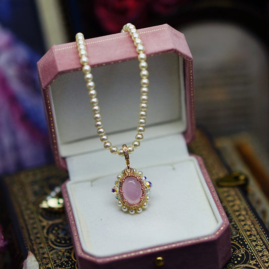 Zen Healing Vintage Pink Agate Pearl Love Pendant Necklace