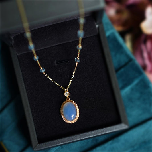 Zen Healing Vintage Blue Agate Crystal Handmade Harmony Necklace