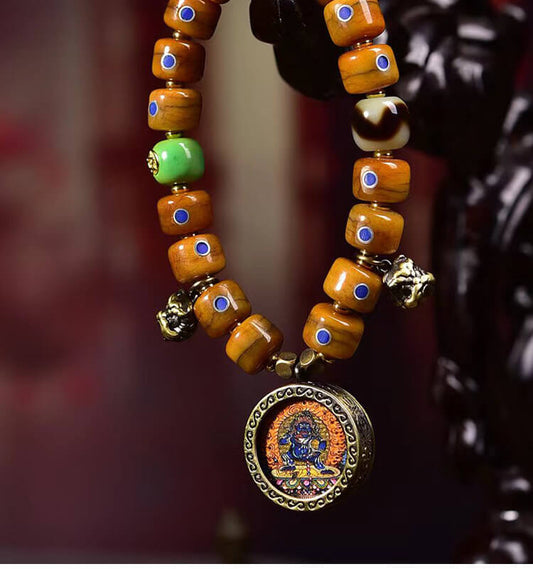 Lapis Lazuli Portable Thangka Pendant Yak Bone Bracelet