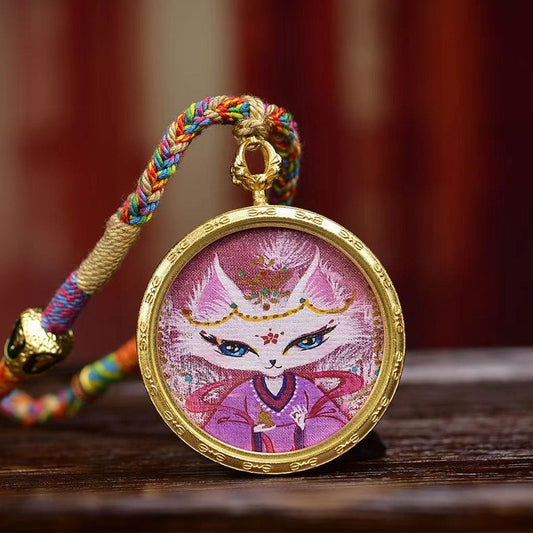 Zen Healing Tibet Hand-Painted Fox Amulet Prtection Braided Necklace