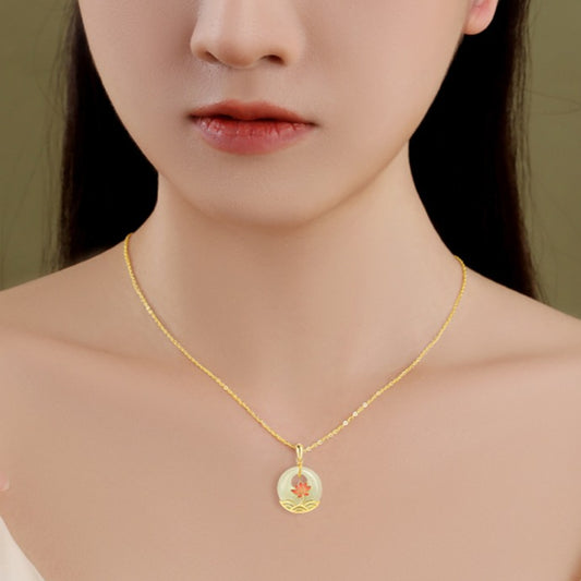 Zen Healing 925 Silver Hetian Jade Lotus Harmony Pendant Necklace