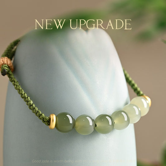 Zen Healing Hetian Jade Green Fortune Knot Braided String Couple Bracelet