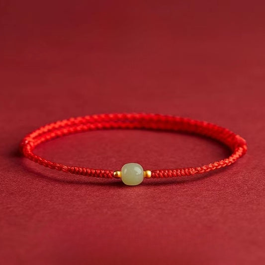 Zen Healing Hetian Jade Year of The Snake Lucky Bead Red String Prosperity Bracelet