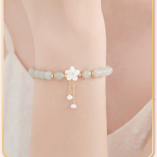 A jade bead bracelet consists of round or faceted jade beads, offering a more flexible and casual look. These are perfect for stacking or pairing with other crystal jewelry.
