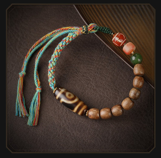 Zen Healing Tibetan Agarwood Agate Dzi Bead Protection Braided Bracelet