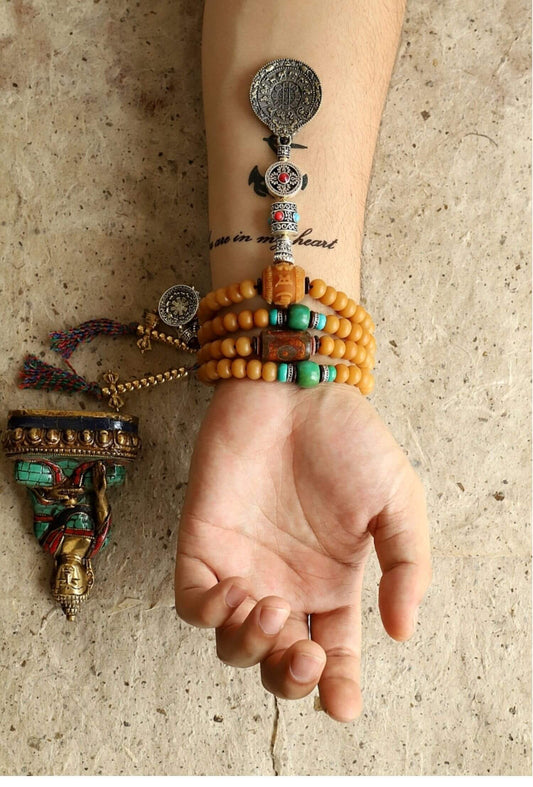 Made from sacred beads like Bodhi seeds, sandalwood, or turquoise, the Tibetan Buddhist bracelet is used for counting mantras and enhancing meditation practices.