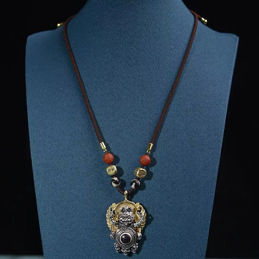 Tibetan Natural Agate Third Eye Dzi Bead Garuda Spiritual Protection Wisdom Pendant Necklace