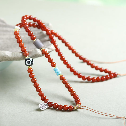 Bracelet à double anneau en perles de Bouddha en agate rouge et bois de santal du Sud - Purification • Apaisant