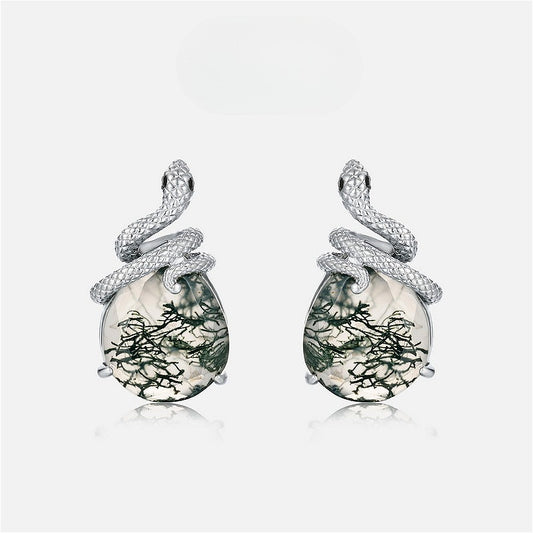 Zen Healing Moss Agate 925 Silver Year of the snake Stud Earrings