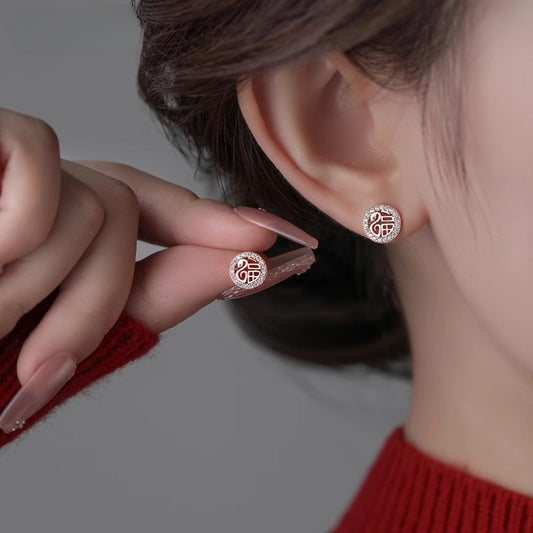Zen Healing 925 Silver Year of the Snake 2025 Fu Character Auspicious Earrings