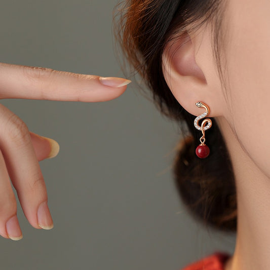 Zen Healing 925 Sterling Silver Cinnabar Year Of The Snake Blessing Earrings