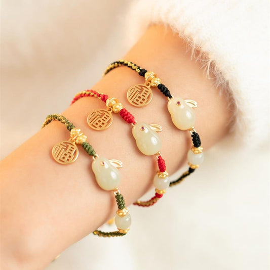 Zen Healing 925 Sterling Silver Jade Rabbit Luck Braided Bracelet