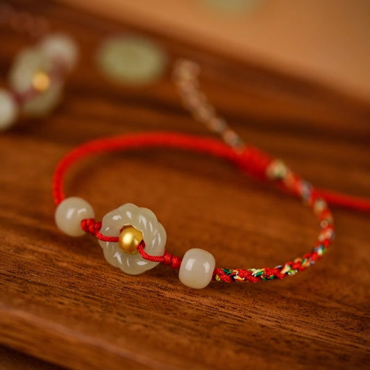 Zen Healing 999 Gold Bead Hetian Jade Möbius Strip Love & Harmony Braided Bracelet