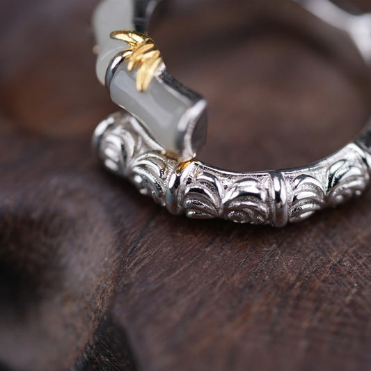 Natural Hetian jade bamboo ring s925 silver ring gift
