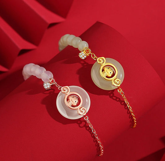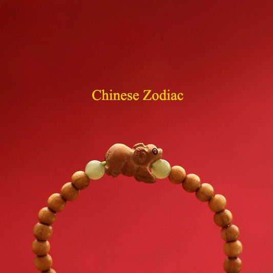 Zen Healing 2025 Chinese Zodiac Peach Wood Jade Luck Bracelet