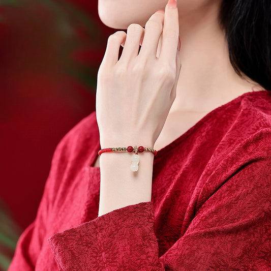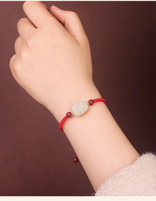 Zen Healing 2025 Chinese Zodiac Hetian Jade Peace Prosperity Red String Bracelet
