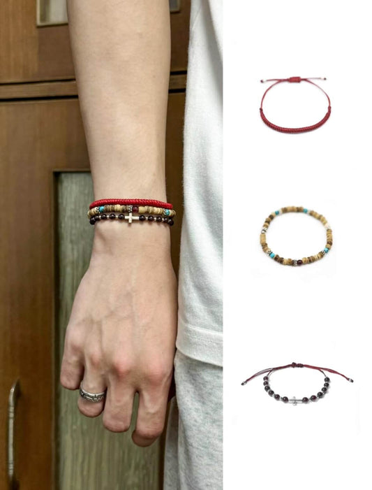 Bracelet en fil rouge tissé selon une méthode ancienne - Une amulette bouddhiste