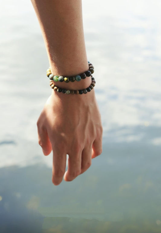 Ensemble de bracelets en agate verte et bois de santal - Sain et apaisant