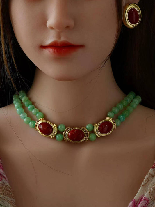 Ensemble de boucles d'oreilles et collier en agate - Amour et espoir