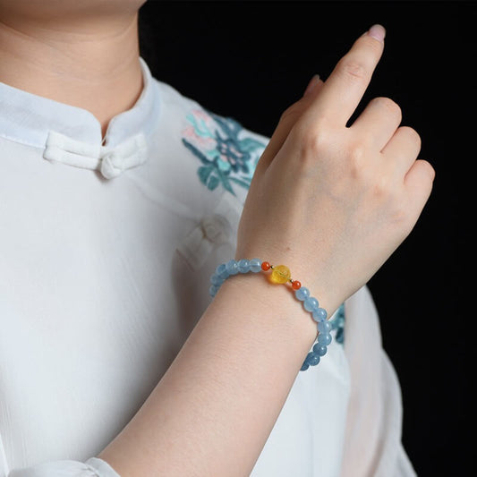 Bracelet en cire d'abeille aigue-marine - Équilibre émotionnel - Soulagement du stress