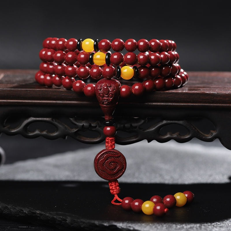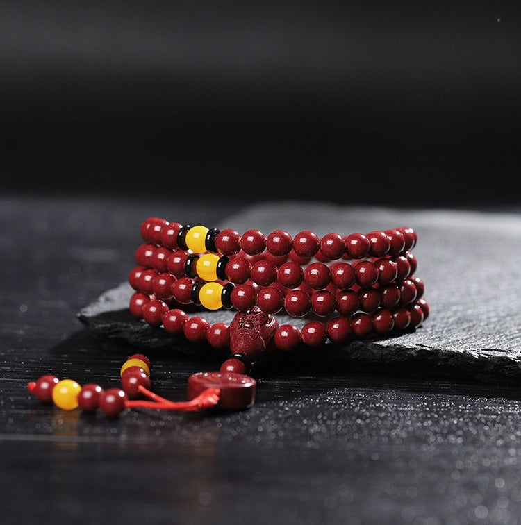 108 Mala Beads Natural Cinnabar Lapis Lazuli Beeswax Protection Bracelet