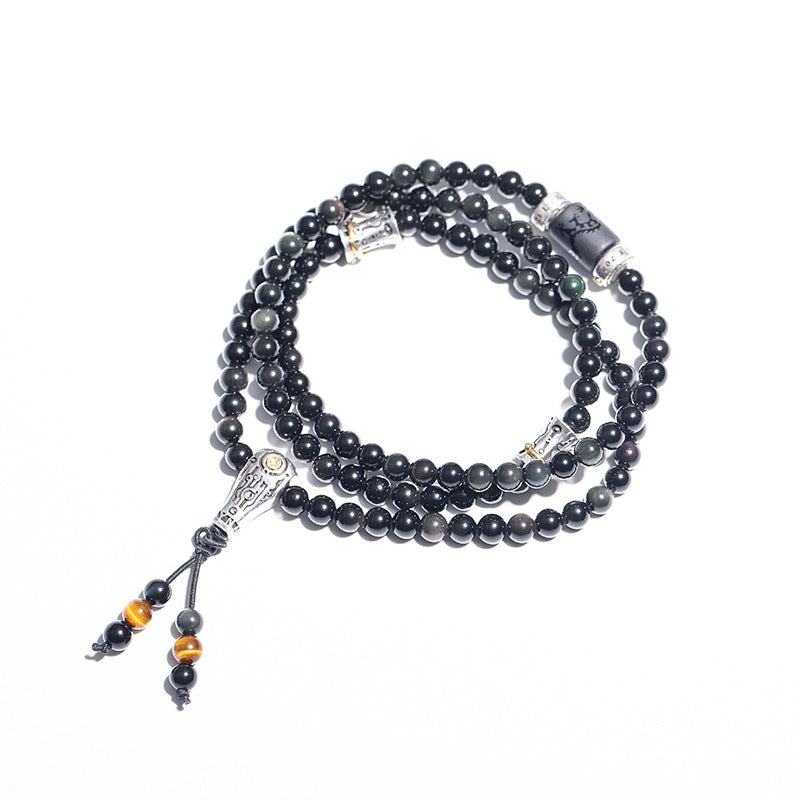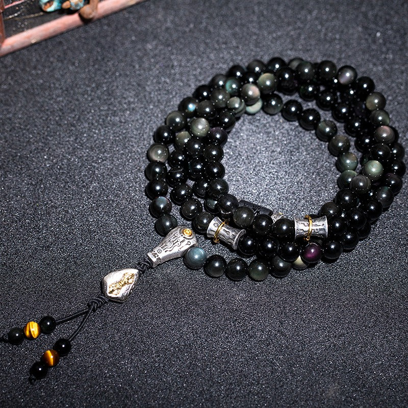 108 Mala Beads Natural Obsidian Wealth Luck Spiritual Healing Bracelet