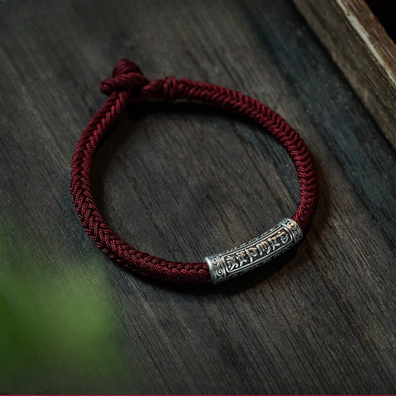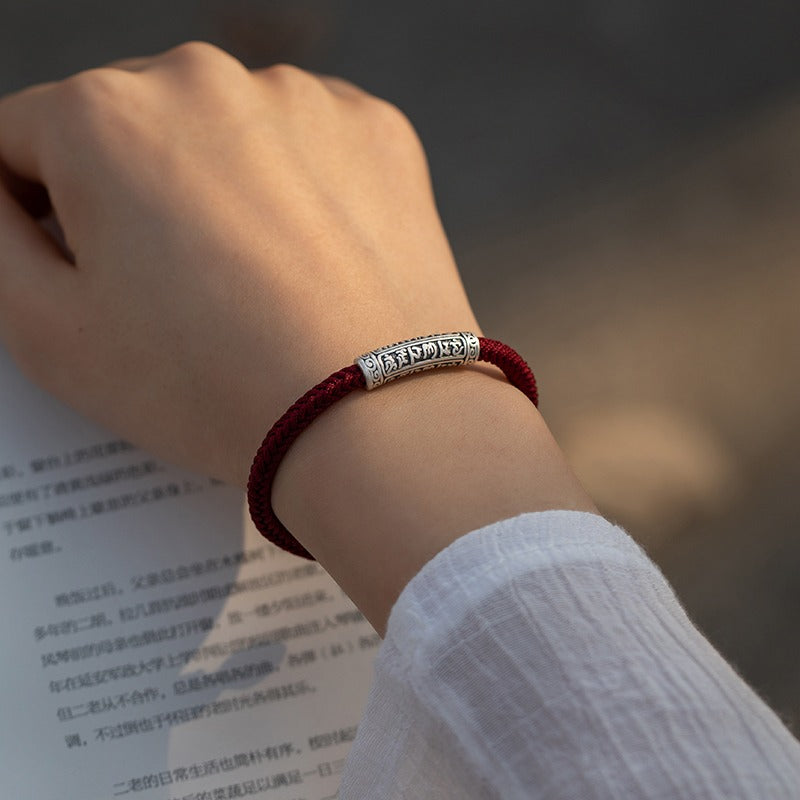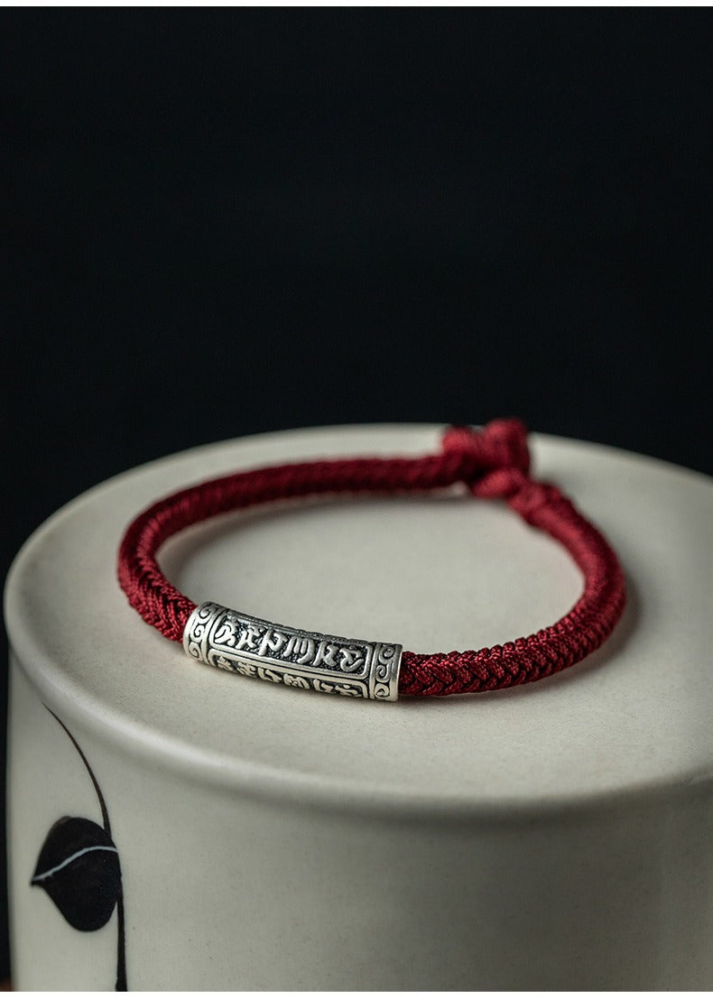 999 Sterling Silver Six True Words Blessing Spiritual Protection Good Luck Red String Bracelet