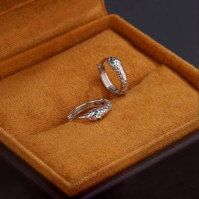 999 Sterling Silver Year Of The Snake Vintage Spirit Snake Green-eyed Snake Shape Harmony Earrings