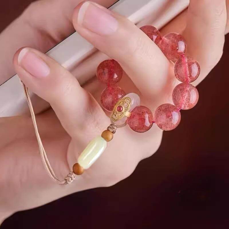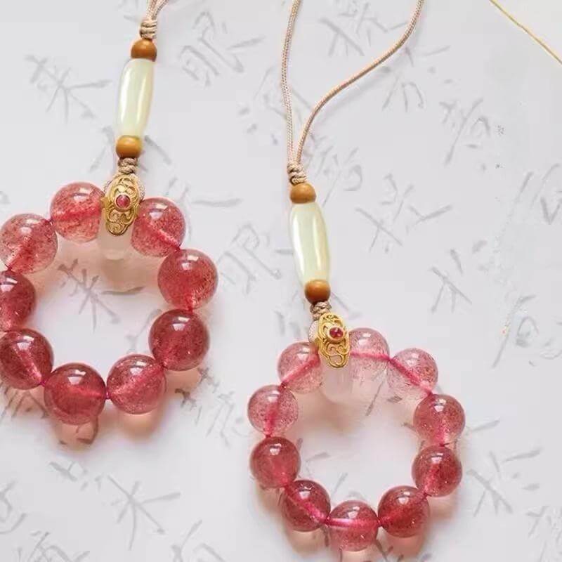 Retrouvez une touche de fraîcheur naturelle dans le monde numérique. La chaîne de téléphone portable en cristal de fraise Berry Bliss Mobile Cord, avec ses inclusions de graines de fraise uniques et sa couleur chaude, apporte tranquillité et harmonie à votre vie quotidienne. Chaque cristal est soigneusement sculpté par la nature, contenant la vitalité et la vigueur de la terre.