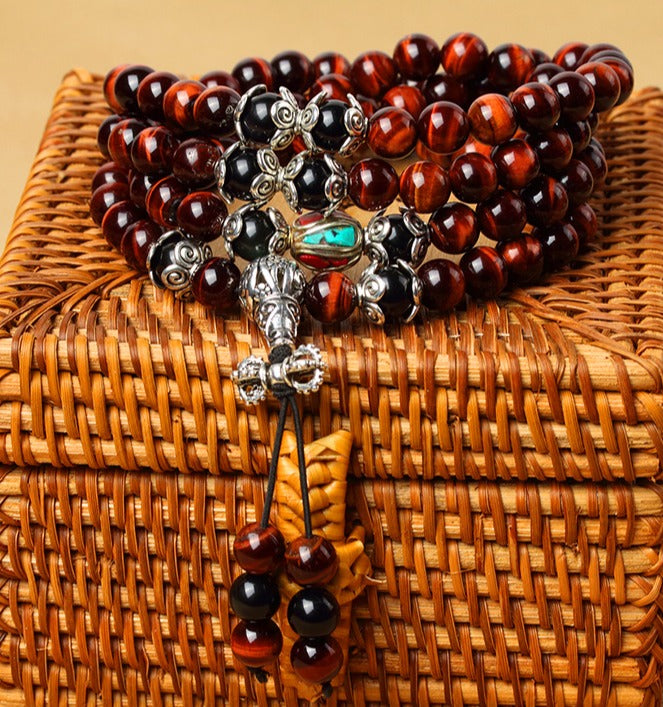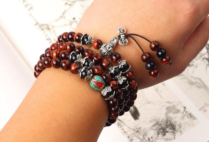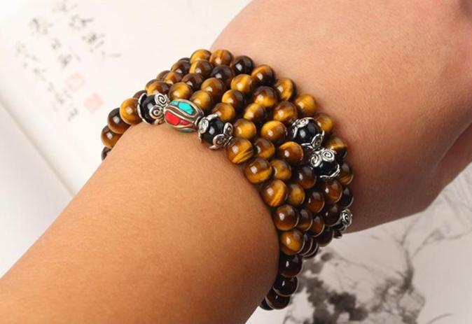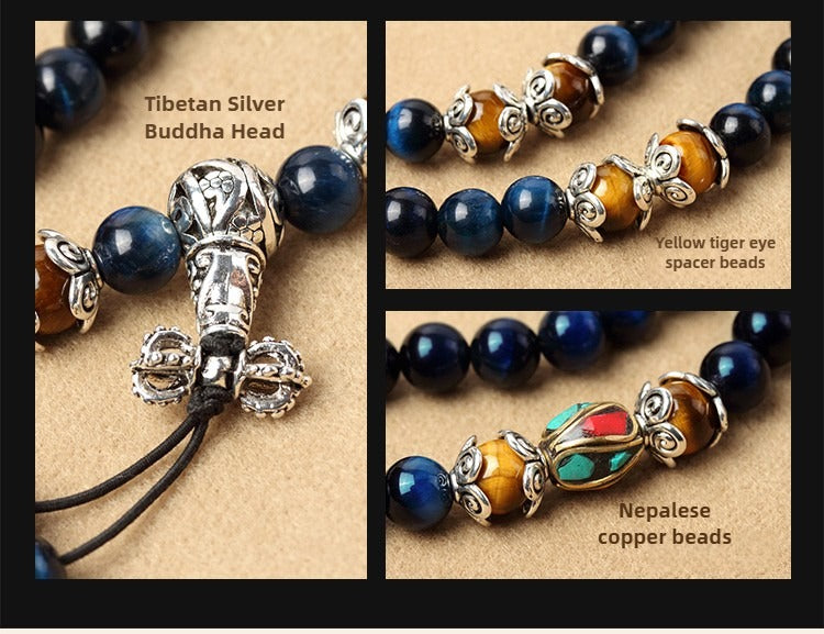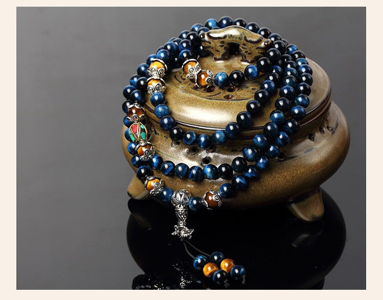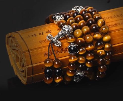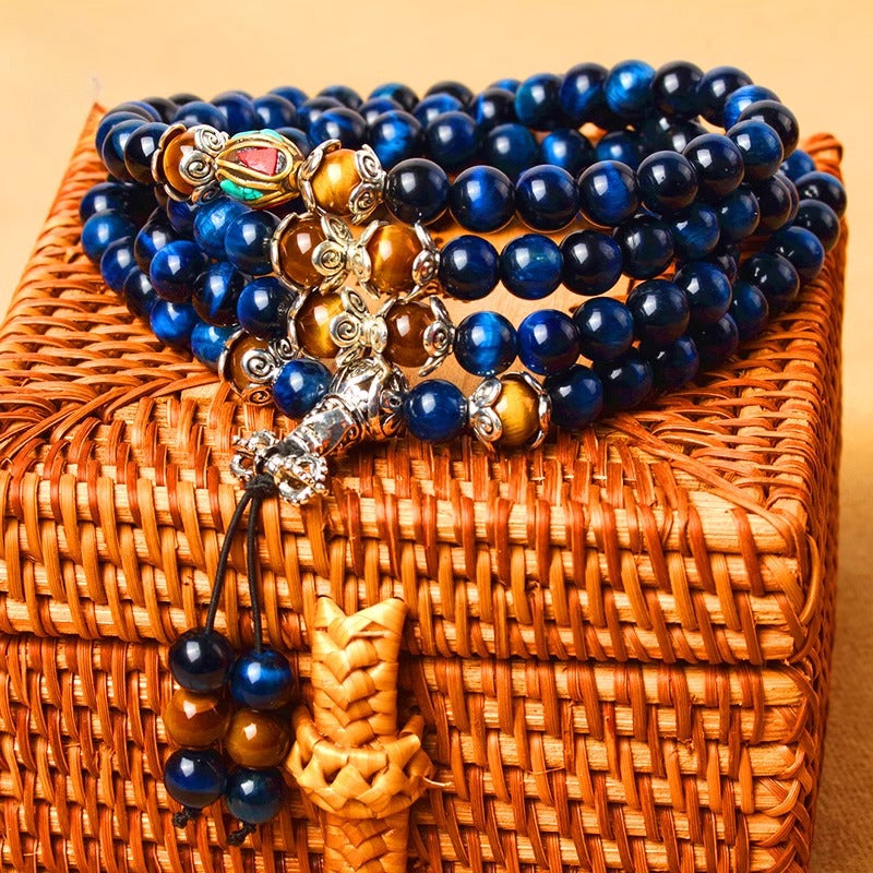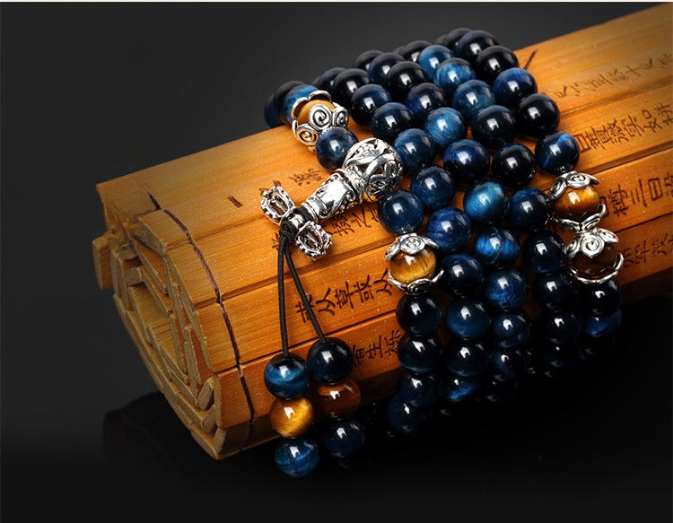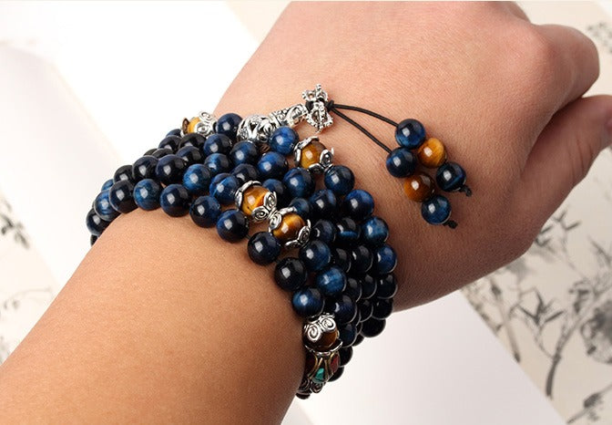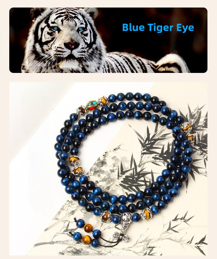 108 Natural Tiger Eye Gemstone Beads Prayer Mala Bracelet Necklace