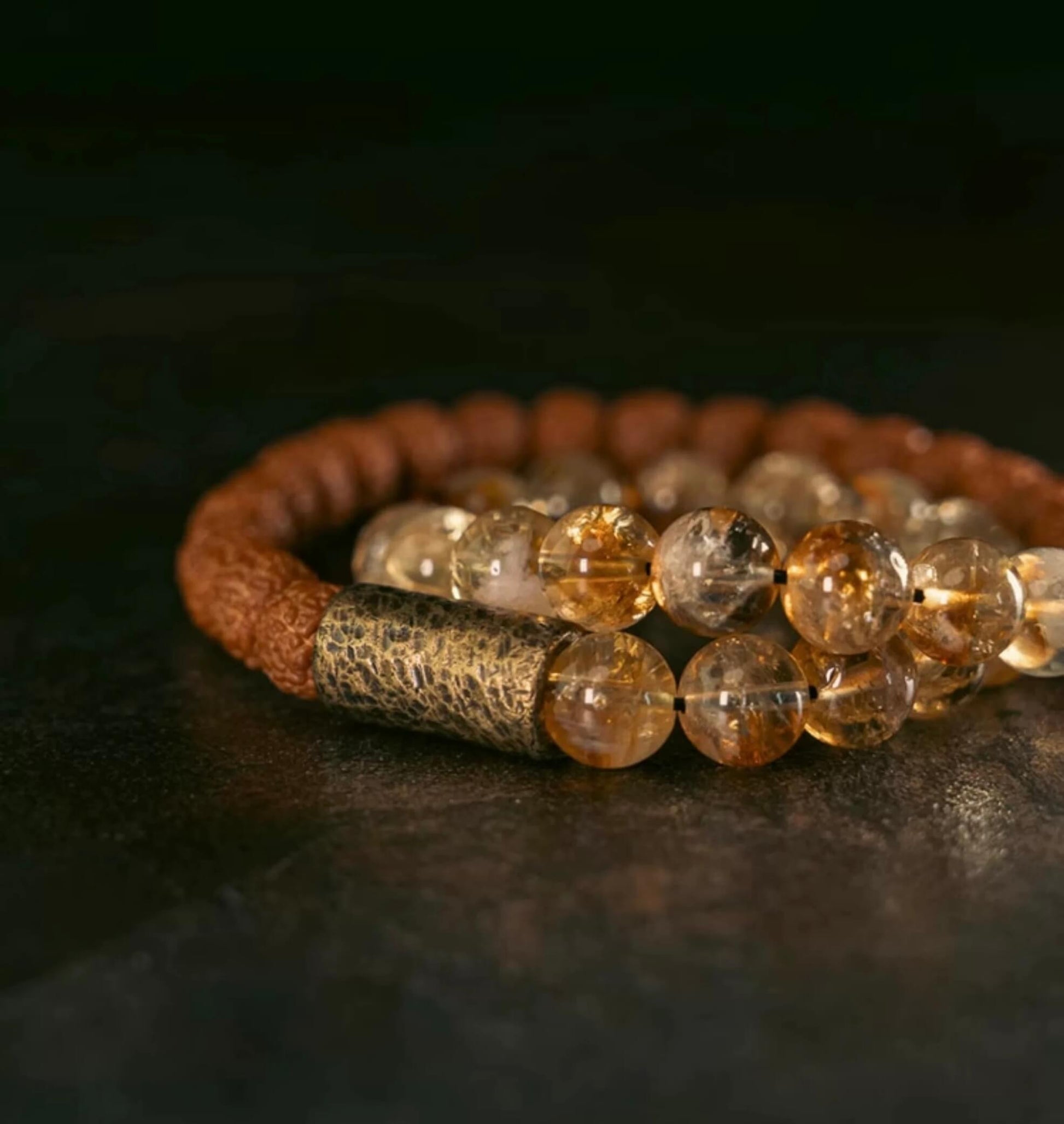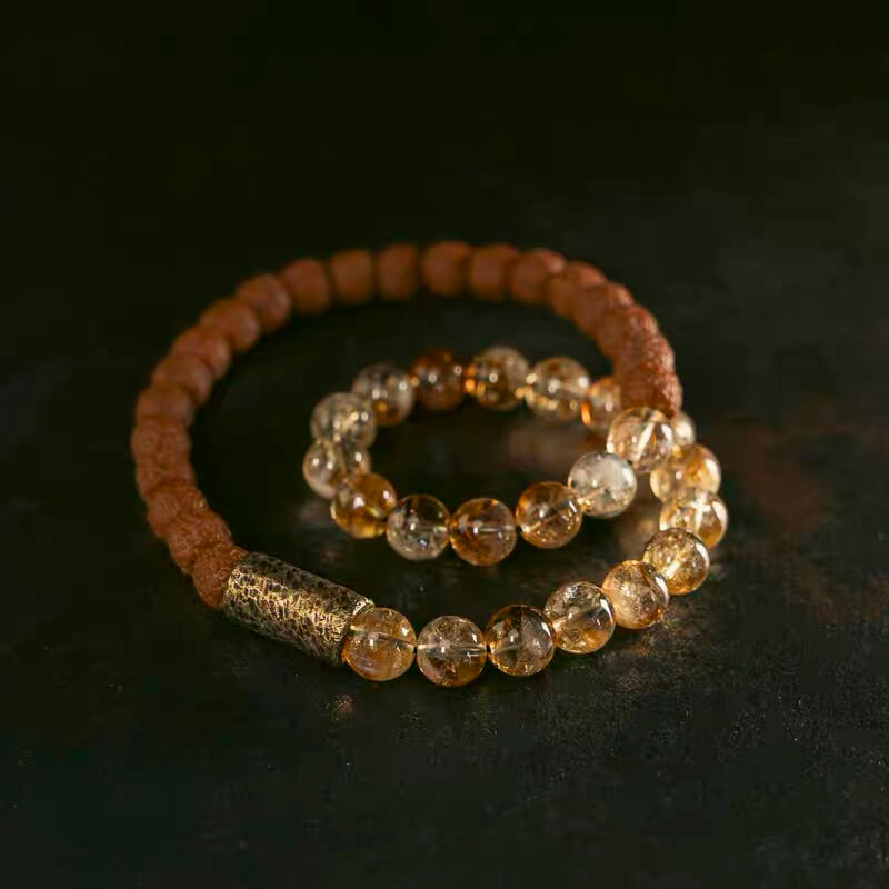 Il s'agit d'un bracelet Vajra Bodhi en citrine qui allie la beauté de la nature à l'énergie mystique. La citrine a été soigneusement sélectionnée pour sa couleur chaude et sa lumière rayonnante, symbolisant la richesse et la sagesse. Les graines de Vajra Bodhi, une relique sacrée du bouddhisme, représentent la persévérance et la purification spirituelle, et chacune d'elles respire le pouvoir de la paix et de la résilience.