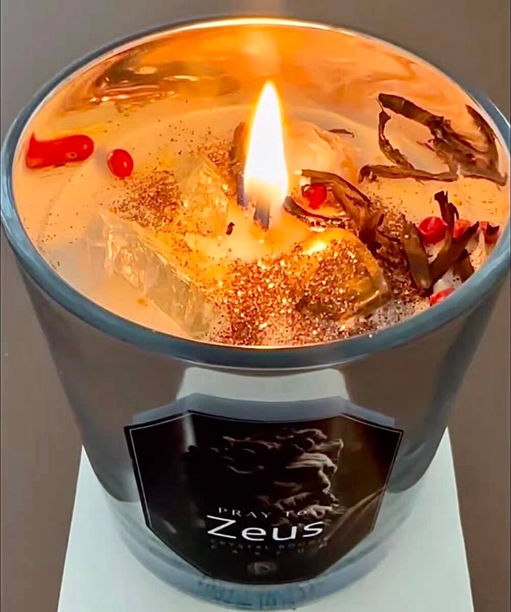 Bougie parfumée à l'huile essentielle de cristal de Dieu Zeus - Manifestation du pouvoir, de la prospérité et de la sagesse
