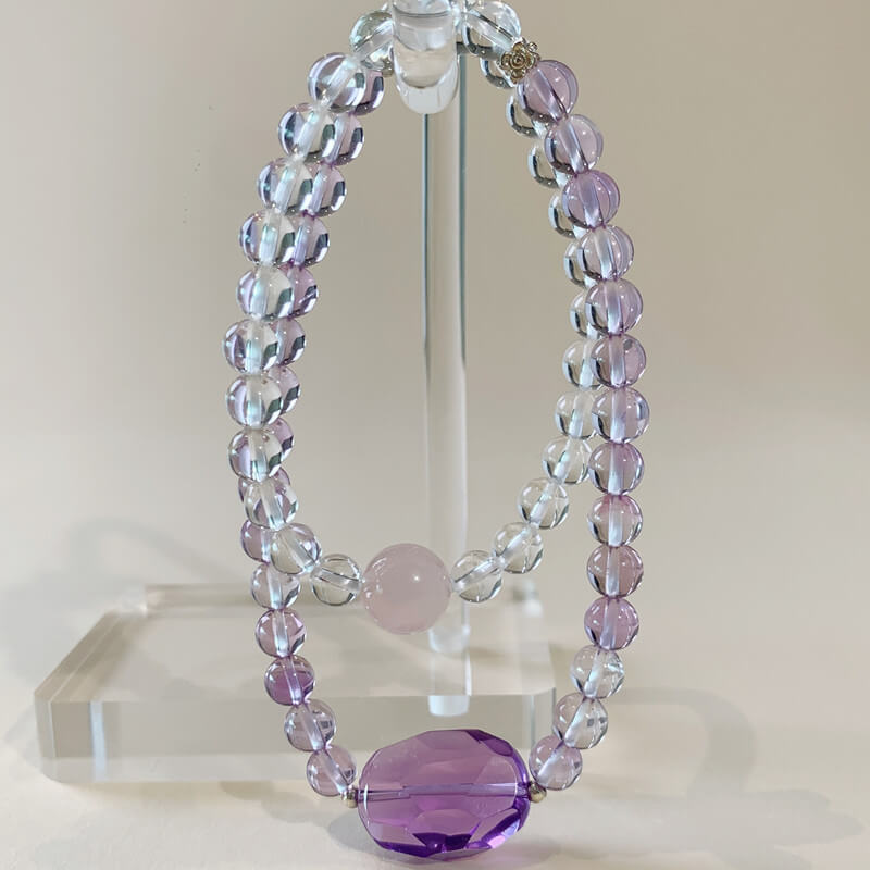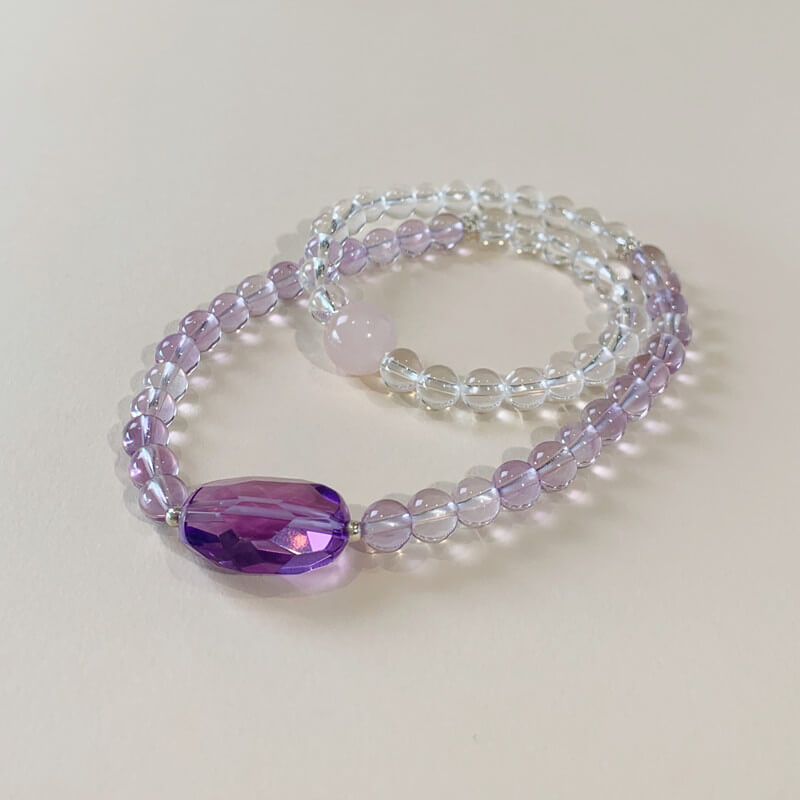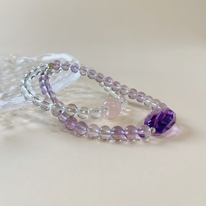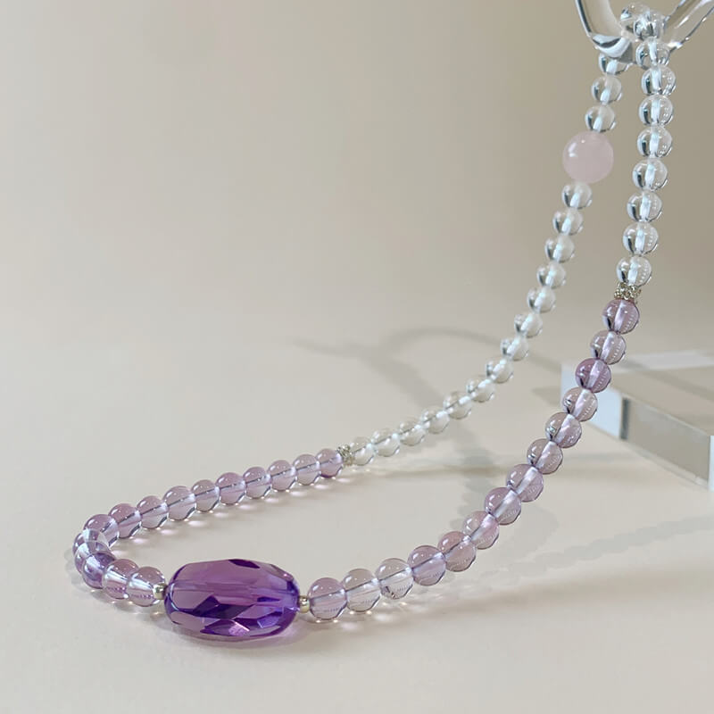 Let the pure light of natural amethyst and clear quartz illuminate your day. This crystal piece is not only a fashionable accessory, but also a source of inner peace and strength.