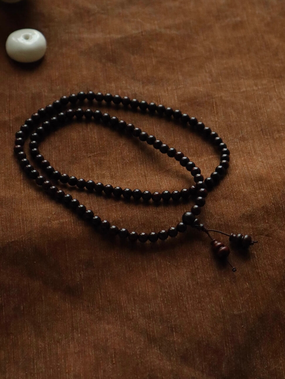 Perles de Mala en bois de santal rouge à petites feuilles, 108 pièces - Équilibrage des émotions