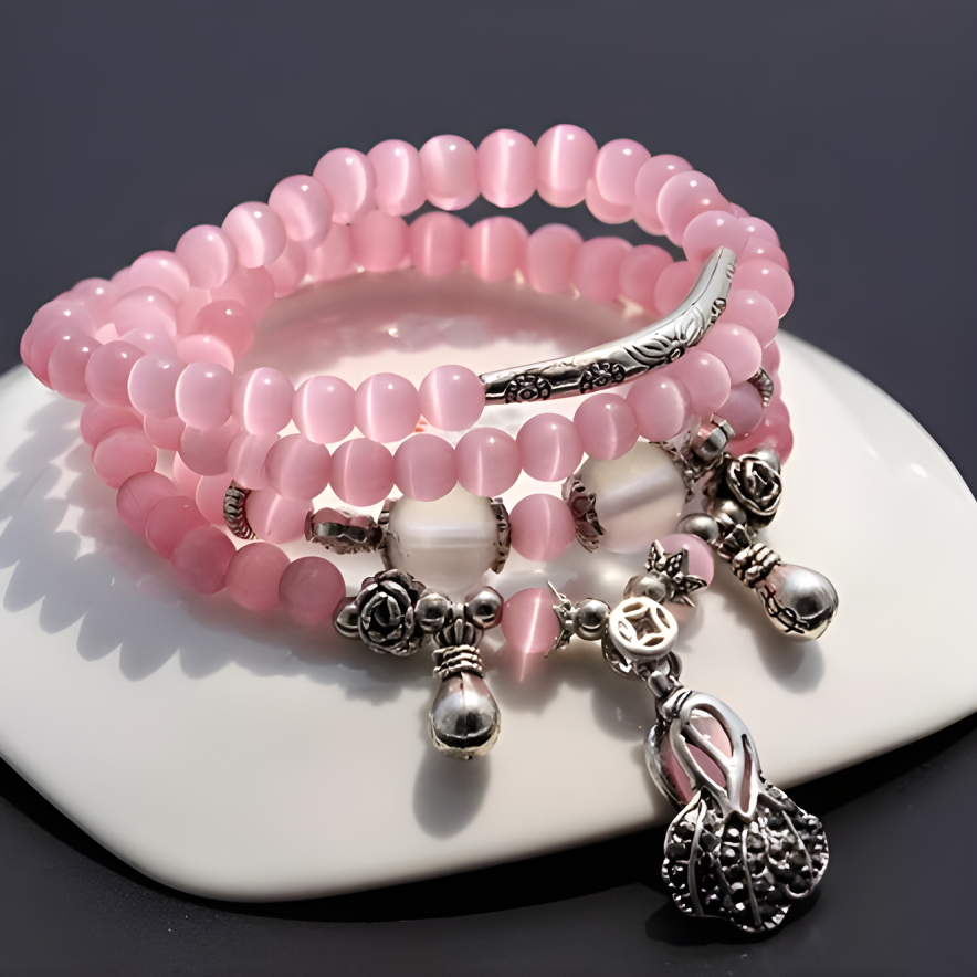 2.Care Instructions: To keep the bracelet in top condition, clean the rose quartz and charms regularly with a soft cloth. Avoid exposing it to chemicals or water to maintain its shine and protective energy. 🌸