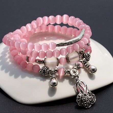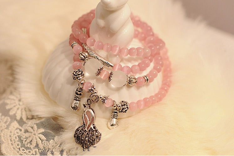 Tibetan 108 Beads Rose Quartz Cat's Eye Wealth Prosperity Bracelet