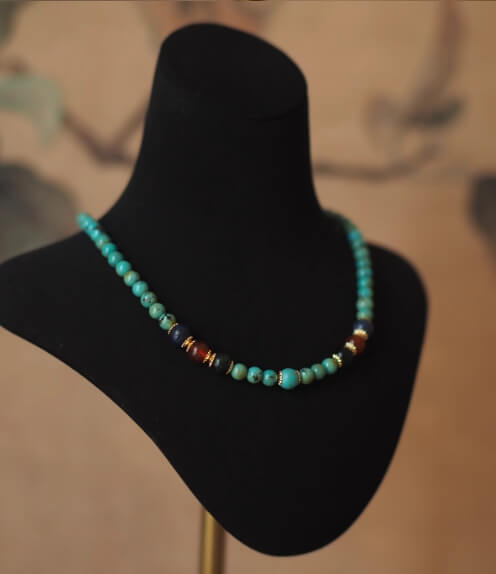Plongez dans le bleu-vert mystérieux de la turquoise et ressentez le lustre chaleureux de l'agate. Ce collier vintage est un pont reliant le passé et le présent, et un gardien de la guérison spirituelle .