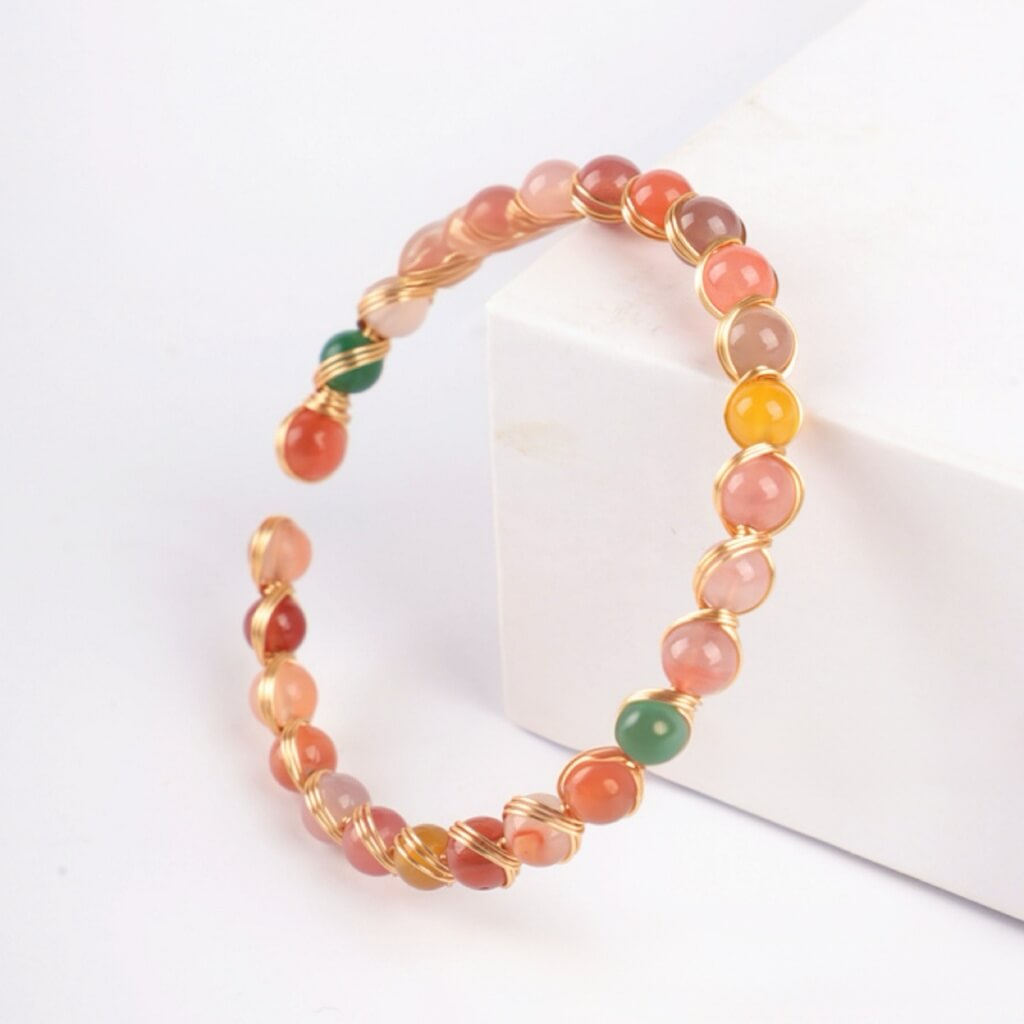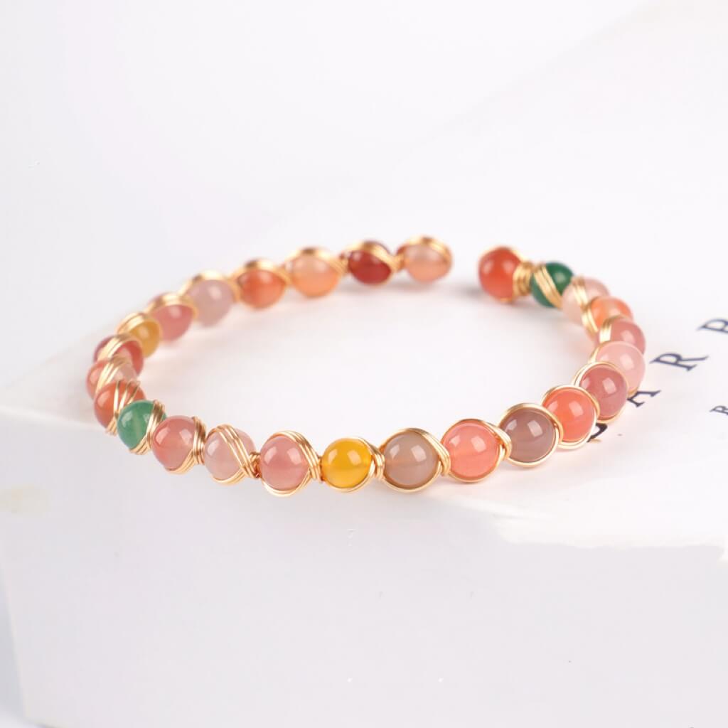 Bracelet en fil d'agate Yanyuan plaqué or 14 carats - Protection•Bien-être