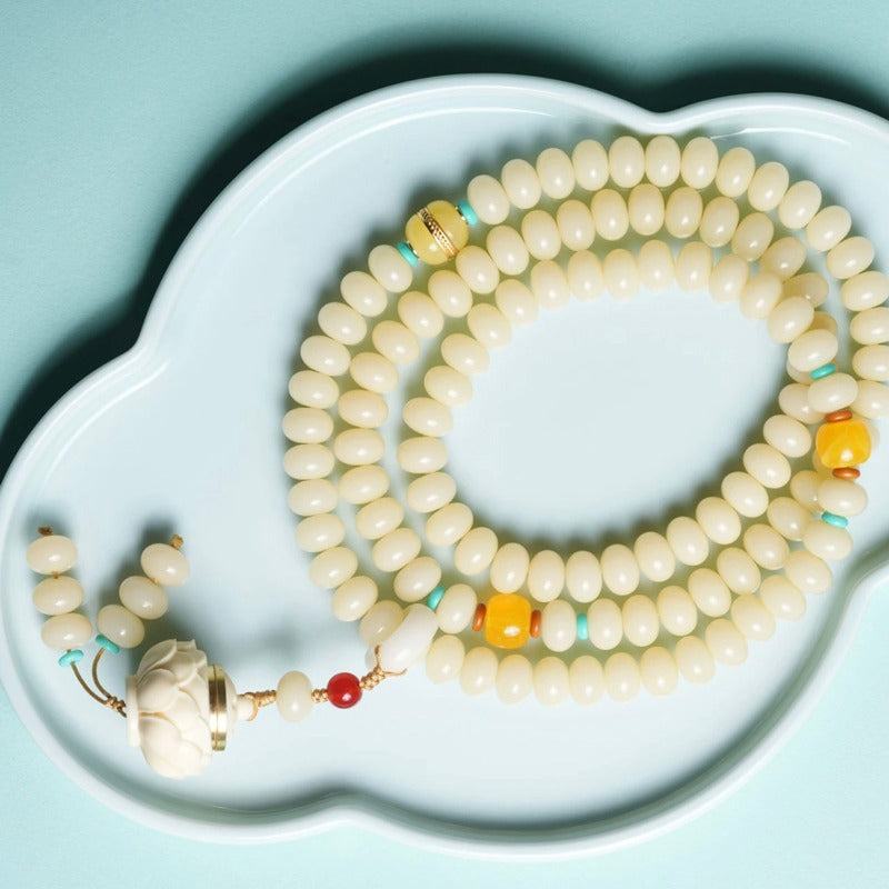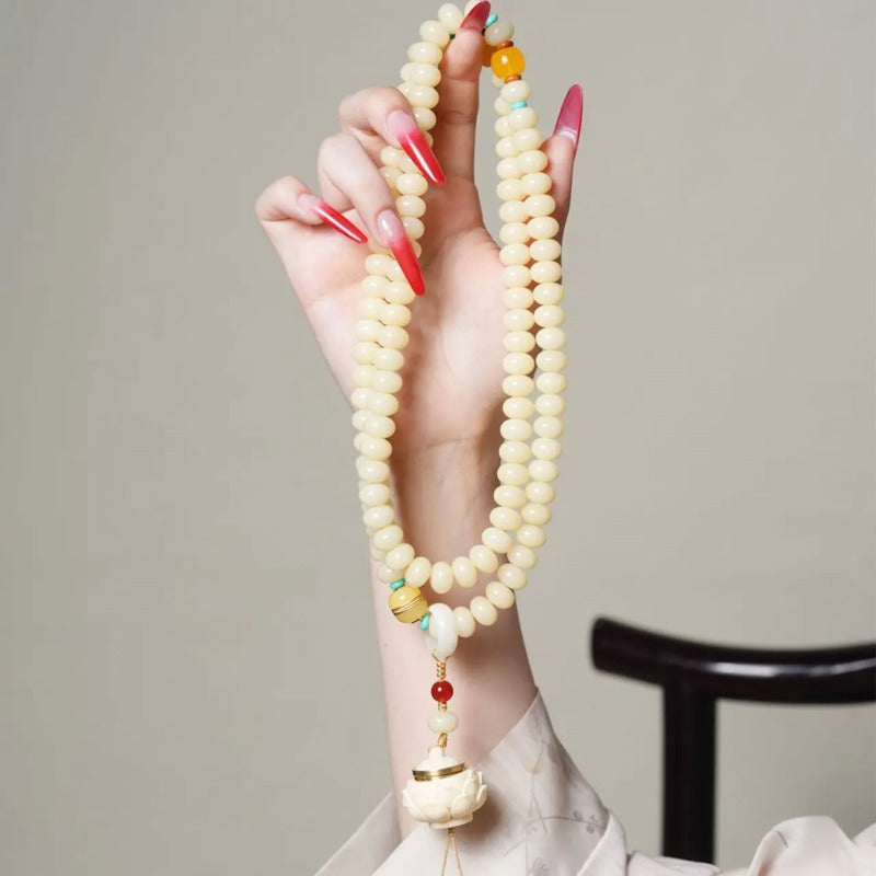 Zen Healing 108 Mala Beads Natural White Jade Bodhi Multi-turn Harmony Bracelet