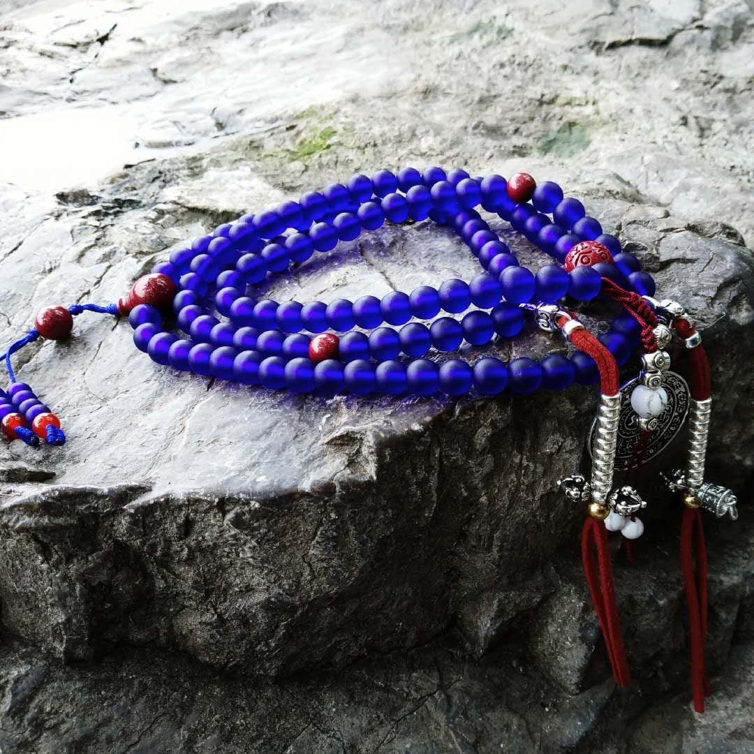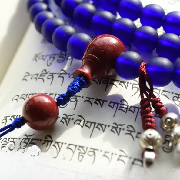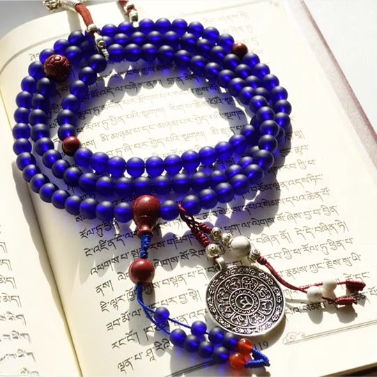Zen Healing 108 Mala Beads Nepalese Blue Liuli Glass Bead Calm Bracelet