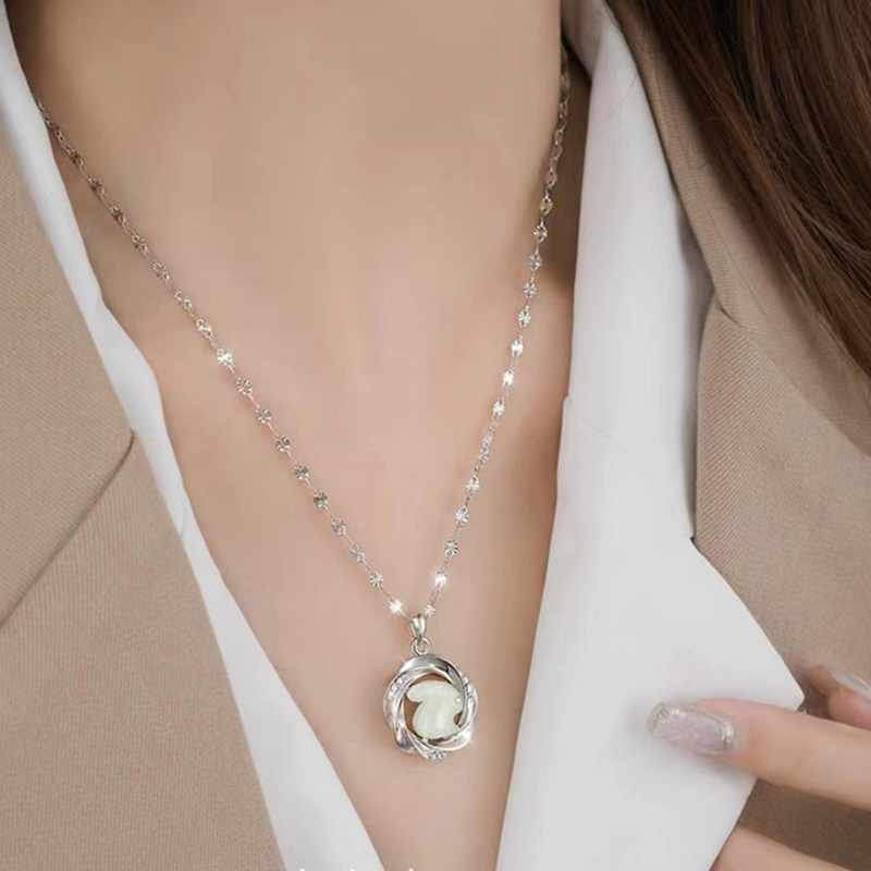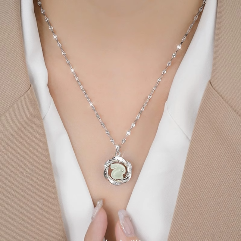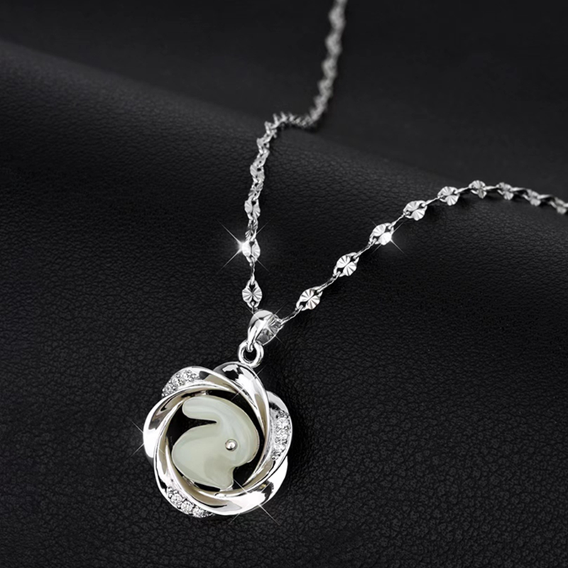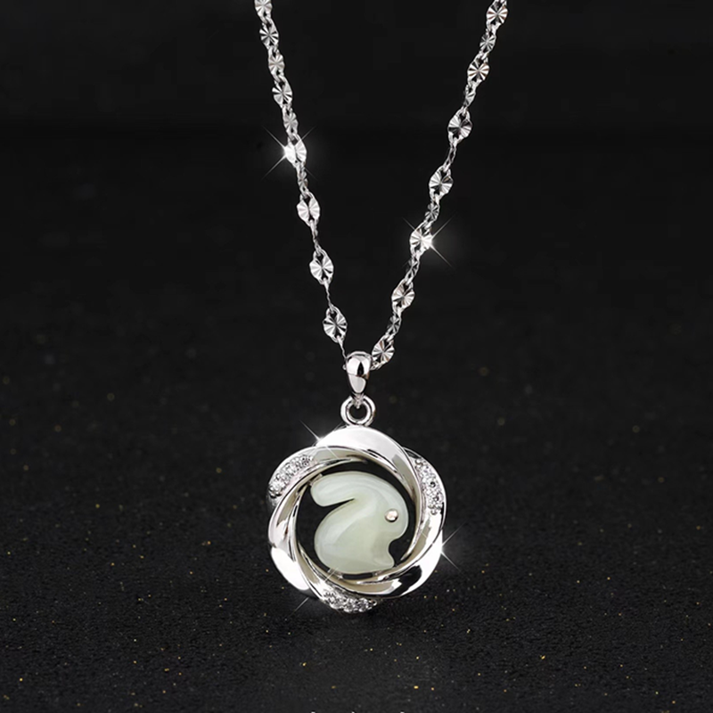 Embrace the timeless beauty and healing powers of our 925 Silver Hetian Jade Moebius Strip Love Pendant Necklace. Featuring a stunning Mobius ring design set with a delicate Hetian jade rabbit, this unique piece not only captures the essence of ancient Chinese culture but also offers the balancing and transformative energies of jade and the symbolic infinity of the Mobius ring. Perfect for those seeking a meaningful, elegant addition to their jewelry collection.