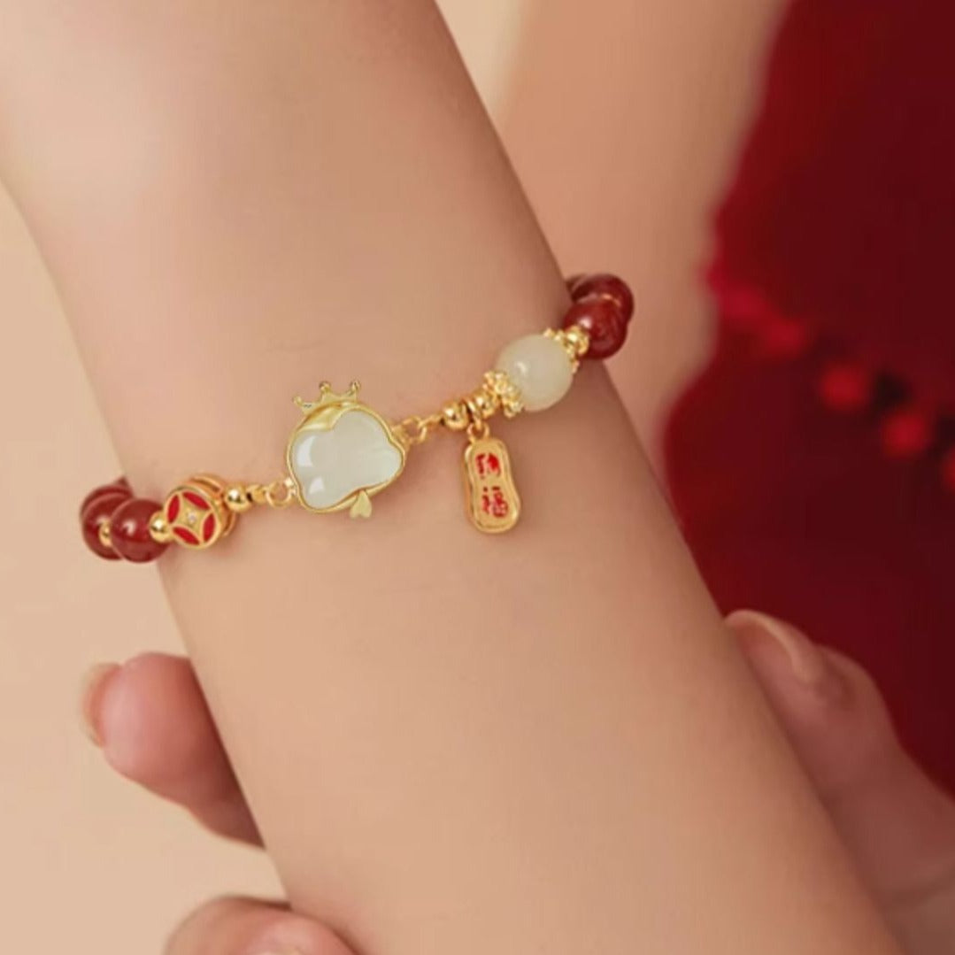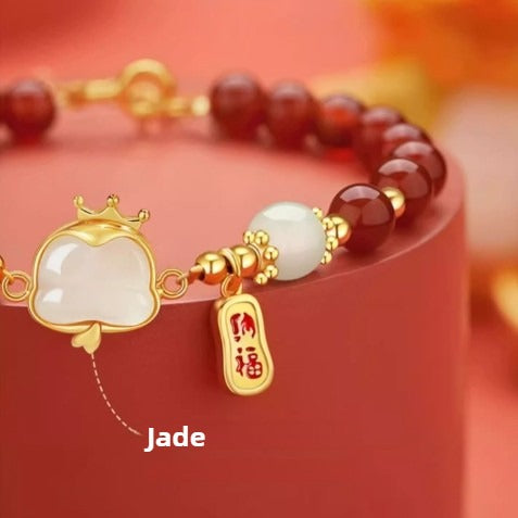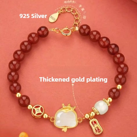 Zen Healing 925 Sterling Silver Hetian Jade Red Agate Year of the Snake Protection Bracelet