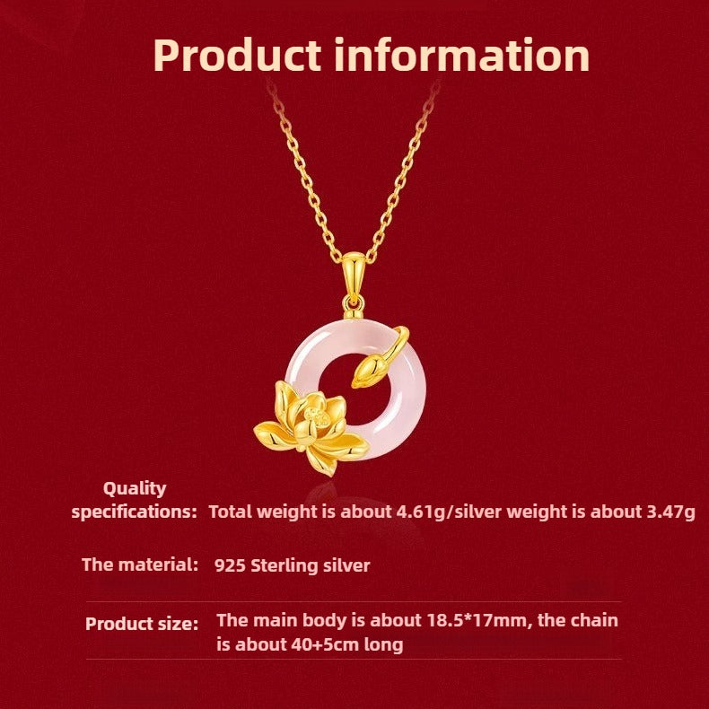 925 sterling silver paired with a serene jade circle and enamel lotus blossom — a classic match of beauty and blessing.